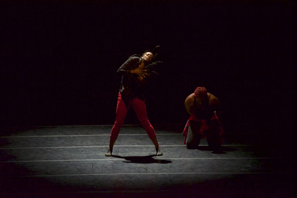 This duet is an intimate evolution of Circle of Love, a piece I originally created at Bates Dance Festival in 2016. Performed by myself and Angelica Polk, the duet allowed us to express the themes of love, resilience, and truth with greater vulnerability and nuance. We embodied a conversation between us two black women navigating shared histories and individual stories. We explored moments of connection and separation, sometimes moving in unison and other times in contrast. These shifts reflected the push and pull of human relationships and how we navigate vulnerability, trust, and endurance. Throughout the piece, we centered the voices often left unheard, dancing not only for ourselves but for those who have been silenced by history, oppression, or circumstance. The vocals of Sheila Chandra played a central role in amplifying this intention. Through our movement, we created a language beyond words. It became a physical testimony that gave shape to grief, joy, memory, and resistance.